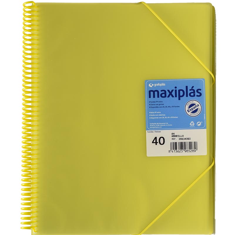 Carpeta de plástico Maxiplas con gomas y 40 Fundas Varios colores