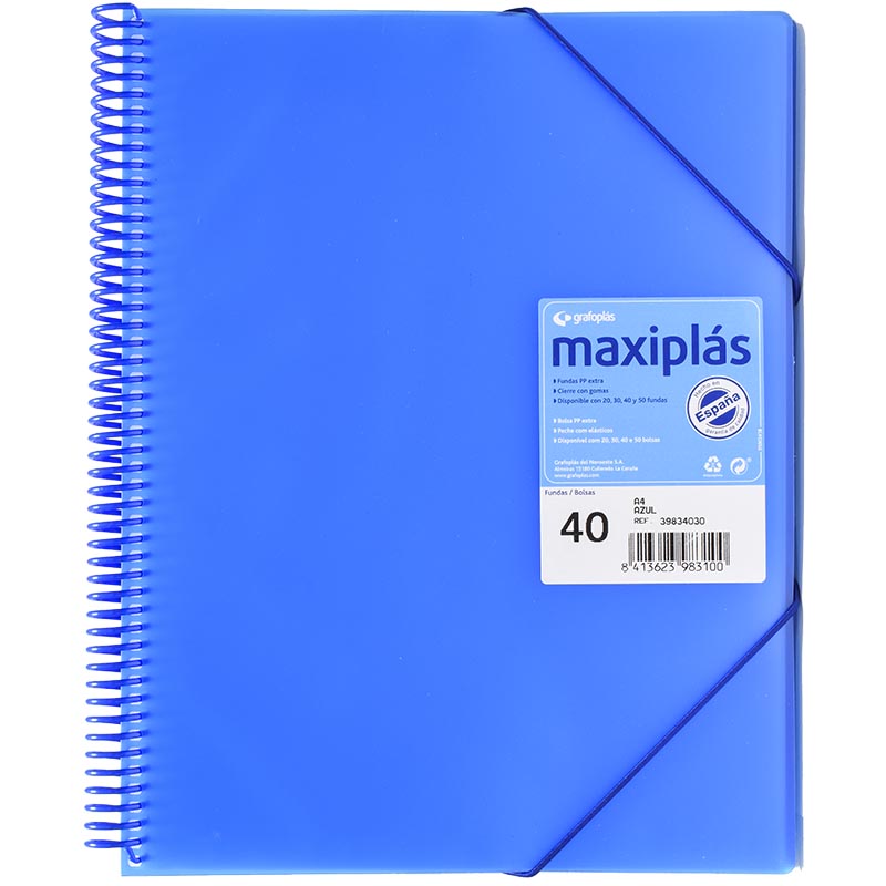 Carpeta de plástico Maxiplas con gomas y 40 Fundas Varios colores